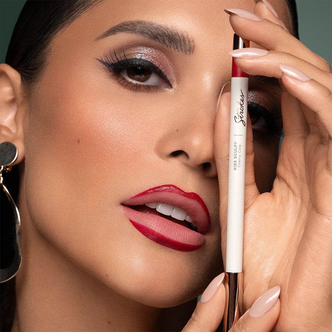 Always start with a sharp tip to precisely sculpt your lips. Following the natural shape of your lips, trace the outline for your lips from the center-top working your way towards the corner of your lips.
