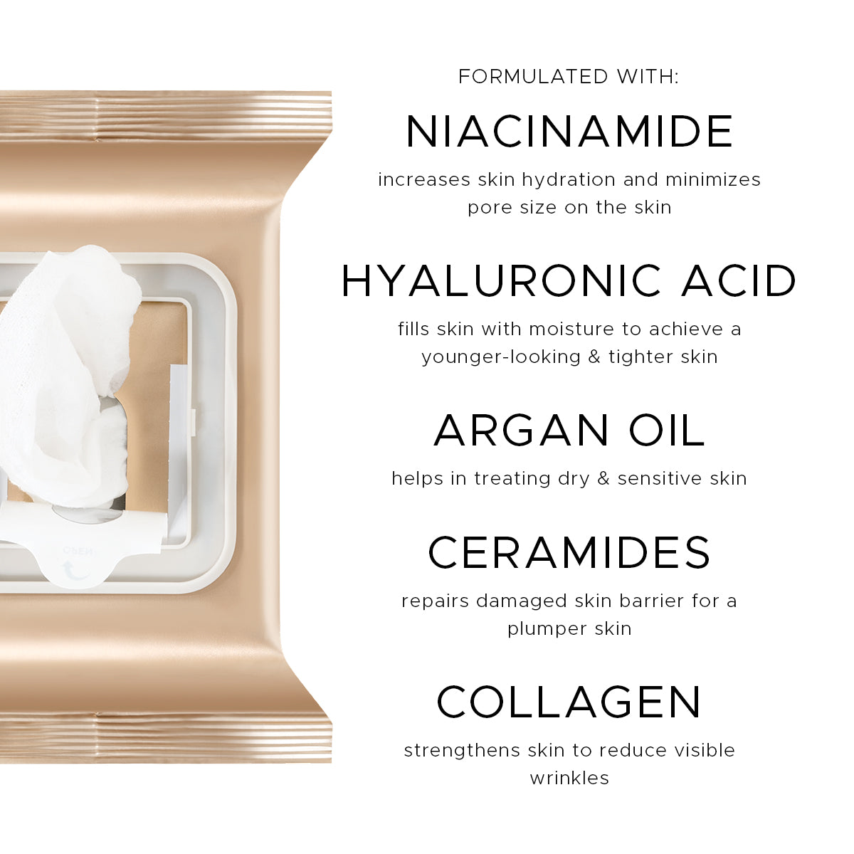 Made from 100% plant-based fibers, this is an ultra-gentle unscented makeup cleansing towelettes soaked in a hydrating formula that serves a dual purpose of makeup removal and skin care. Effectively removes waterproof makeup without irritating the skin’s surface, these Niacinamide-infused wipes are also packed with skin-loving agents such as Hyaluronic Acid, Argan Oil, Ceramides, and Collagen for a gentle cleanse that leaves the skin barrier intact and well-moisturized.